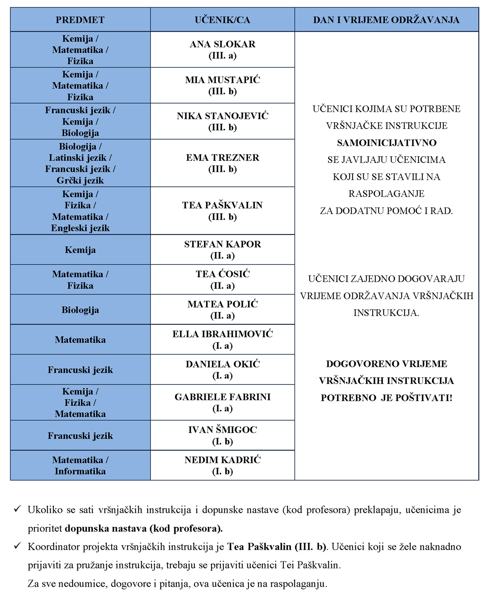 VRŠNJAČKE INSTRUKCIJE ZA UČENIKE I. - III.