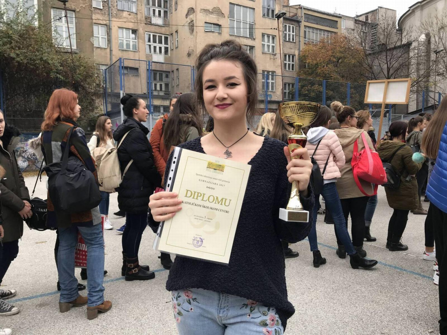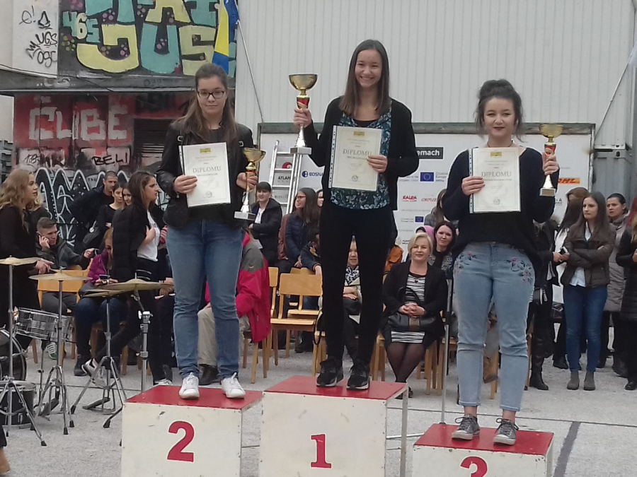 Pokal i diplomu na svečanom proglašenju za osvojeno III. mjesto primila je učenica Mirna Hozić. Čestitamo svim sekcijama za igru i zalaganje, a posebno našim stolnotenisačicama Mirni Hozić i Ivani Pitner.