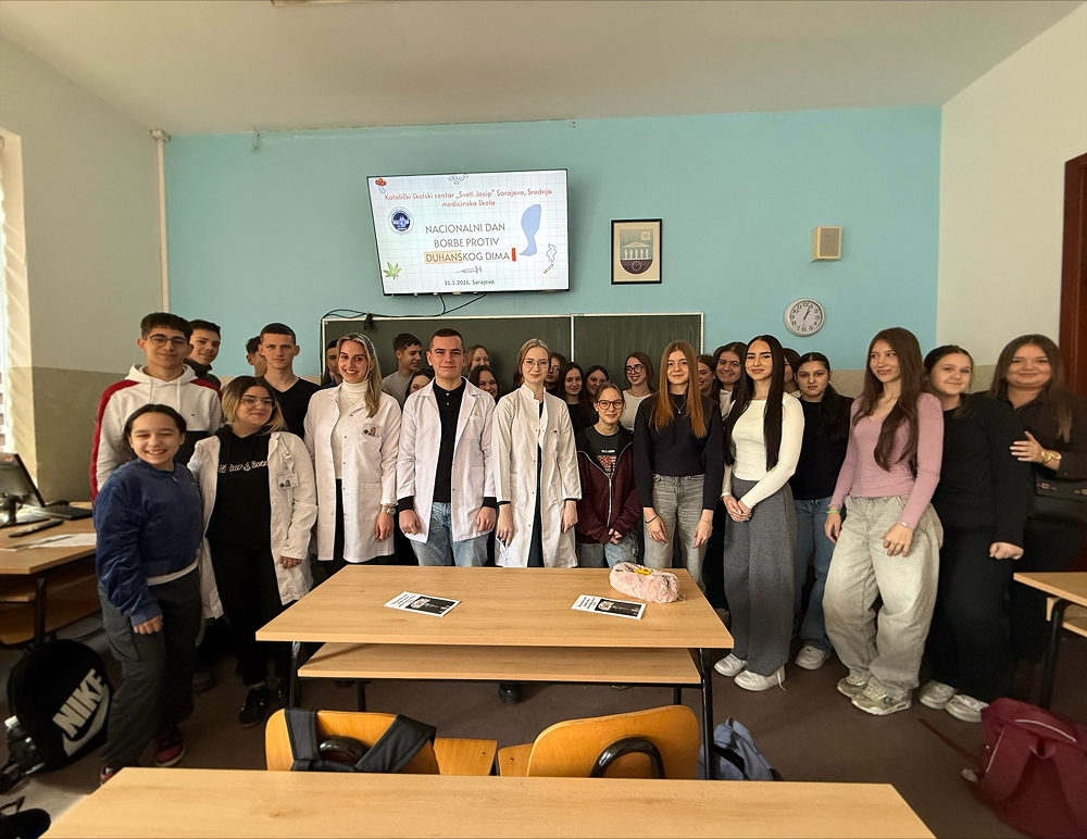Dana 27. siječnja 2026. godine, tijekom sata razredne zajednice 1.a razreda, članovi sekcije Mladi ambasadori sestrinstva Katoličkog školskog centra „Sv. Josip“ – Srednja medicinska škola, pod vodstvom profesorice Sandre Bogdanović održali su edukativnu prezentaciju povodom obilježavanja Nacionalnog dana borbe protiv duhanskog dima.