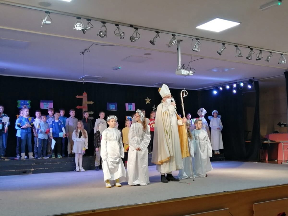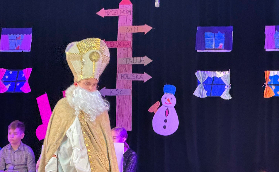 Slijedio je igrokaz u kojem su učenici prikazali putovanje Svetog Nikole od daleke Nizozemske pa sve do našeg Katoličkog školskog centra. Kroz scenske prizore prikazali su različite krajeve Nikolina puta, običaje i susrete s djecom širom svijeta. U sklopu programa mali zbor je otpjevao pjesmu „Budi malo bolji“, koja je posebno dirnula publiku porukom o dobroti i prijateljstvu.