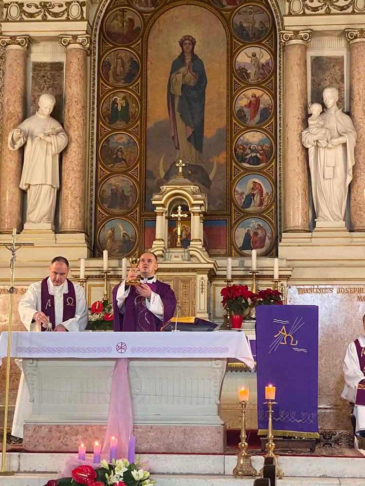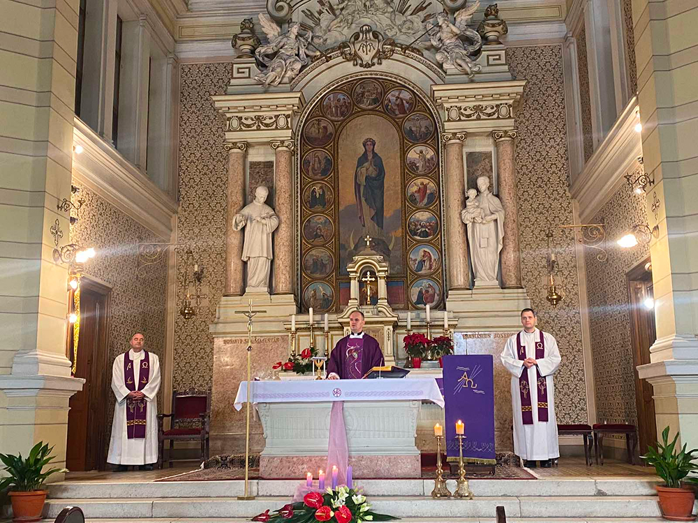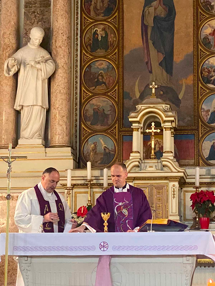 Nakon predavanja, u crkvi Kraljice Svete Krunice služena je misa za sve djelatnike Centra koju je također predvodio velečasni Hrvoje Kalem, zajedno sa velečasnim Vlatkom Rosićem i Darkom Endrichom.