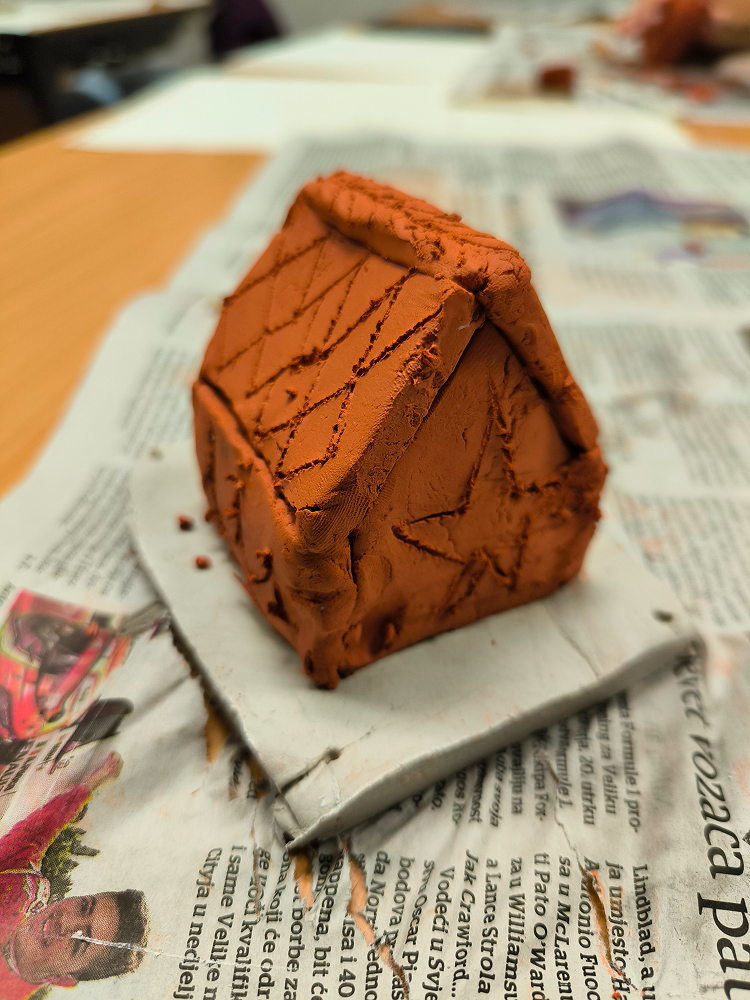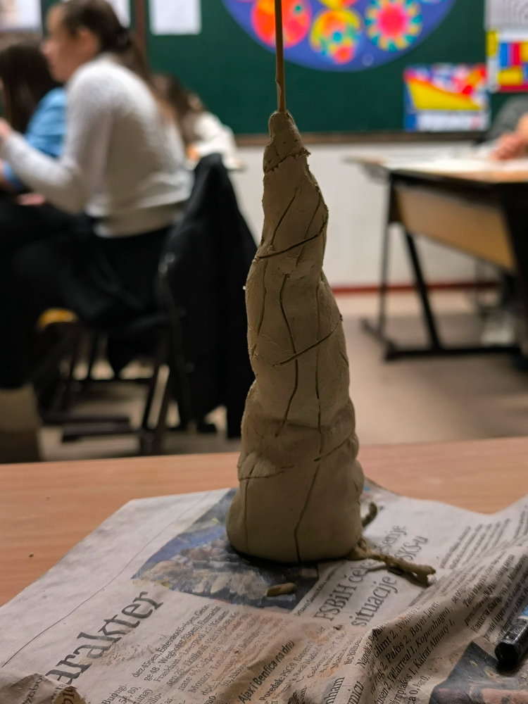 Po povratku u školu, učenici su, oslanjajući se na muzejska zapažanja, izradili skice svojih budućih skulptura u glinamolu. Nakon toga uslijedio je praktični dio rada, u kojem su modelirali vlastita trodimenzionalna rješenja primjenjujući osnovne kiparske tehnike dodavanja i oduzimanja materijala.