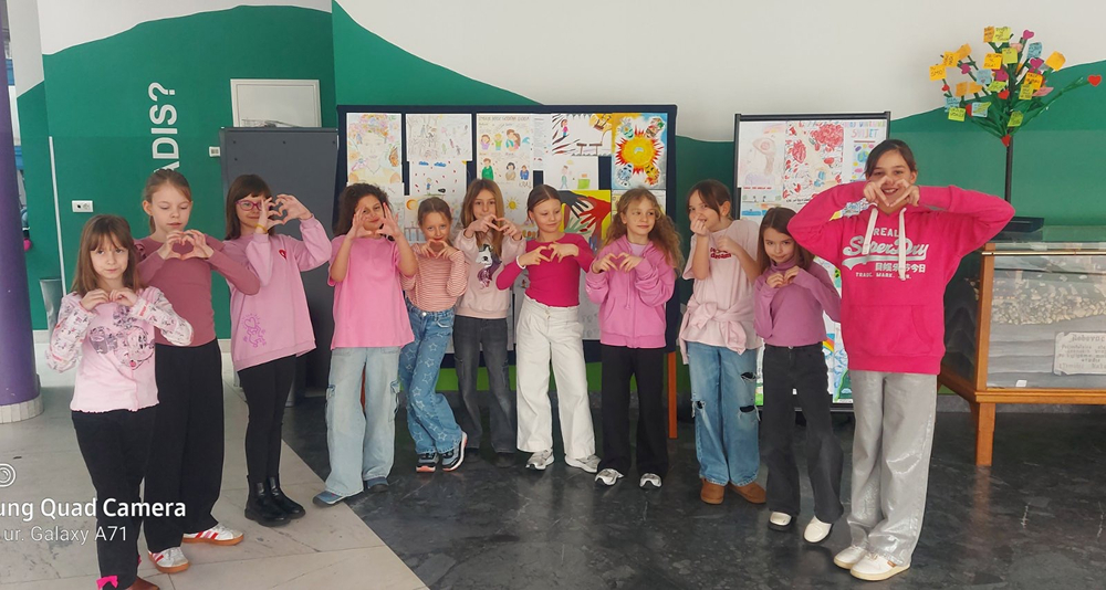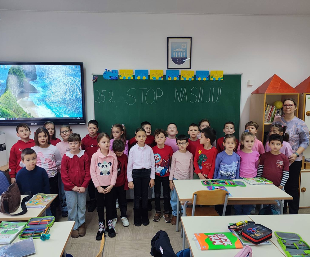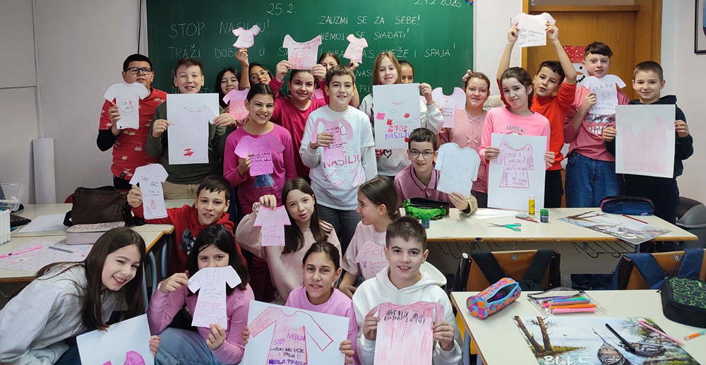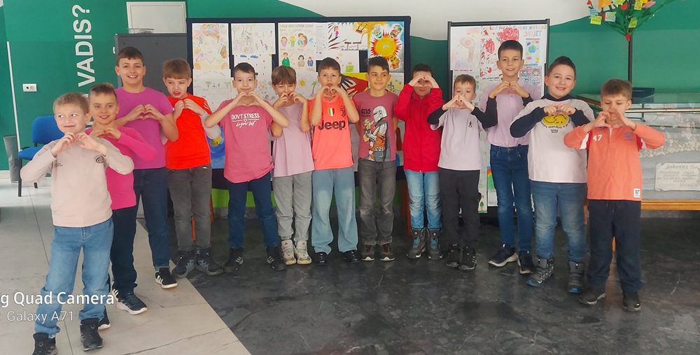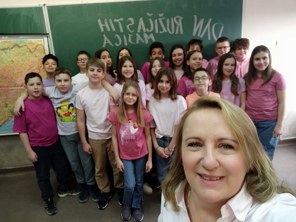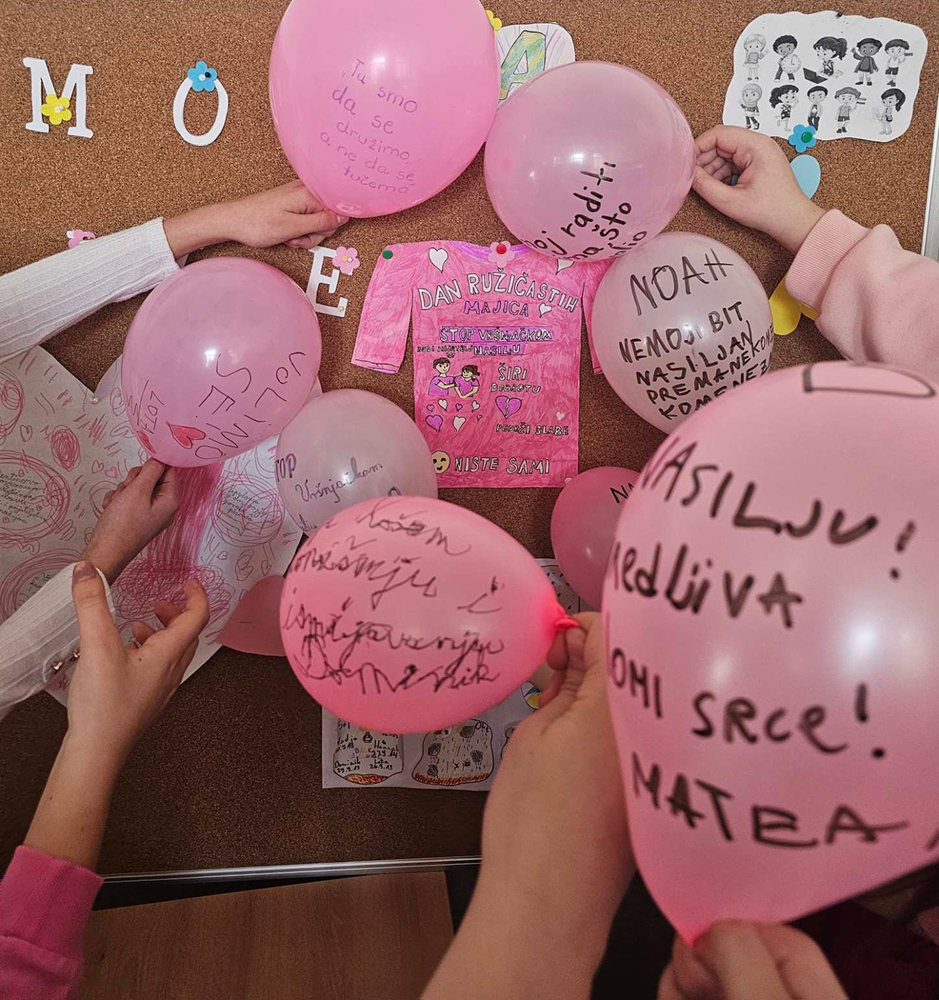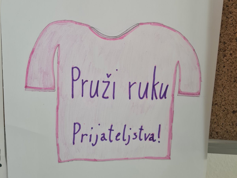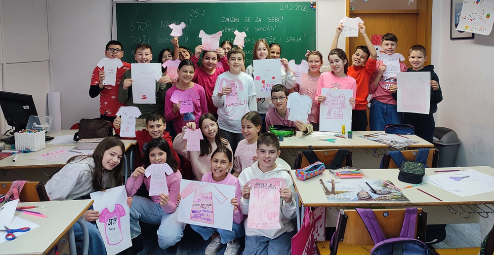 U kreativnoj radionici učenici su od ružičastog papira izrađivali male majice, pažljivo ih izrezivali i na njih ispisivali snažne poruke protiv nasilja:„Stop nasilju“ i „Biraj ljubaznost“. Svaka poruka nastala je iz dječijeg srca i iskrene želje da naš razred bude mjesto sigurnosti, osmijeha i podrške. Na Dan obilježavanja ružičastih majica u srijedu, 25. veljače 2026. godine učenici su obukli ružičaste majice kao simbol zajedništva i jasne poruke – nasilju nema mjesta među nama.