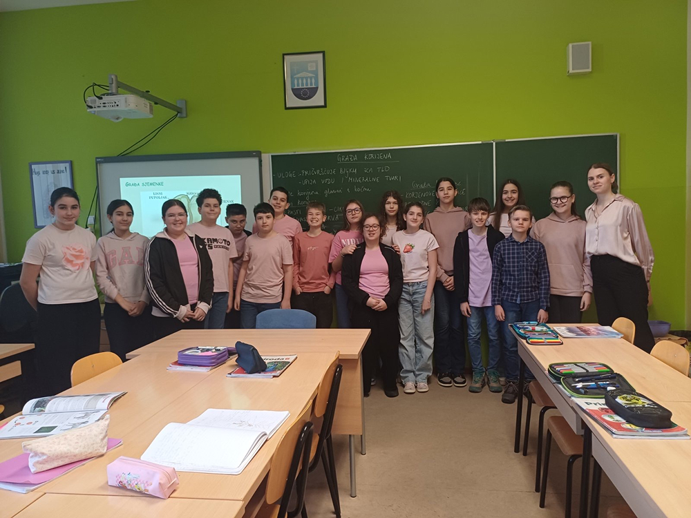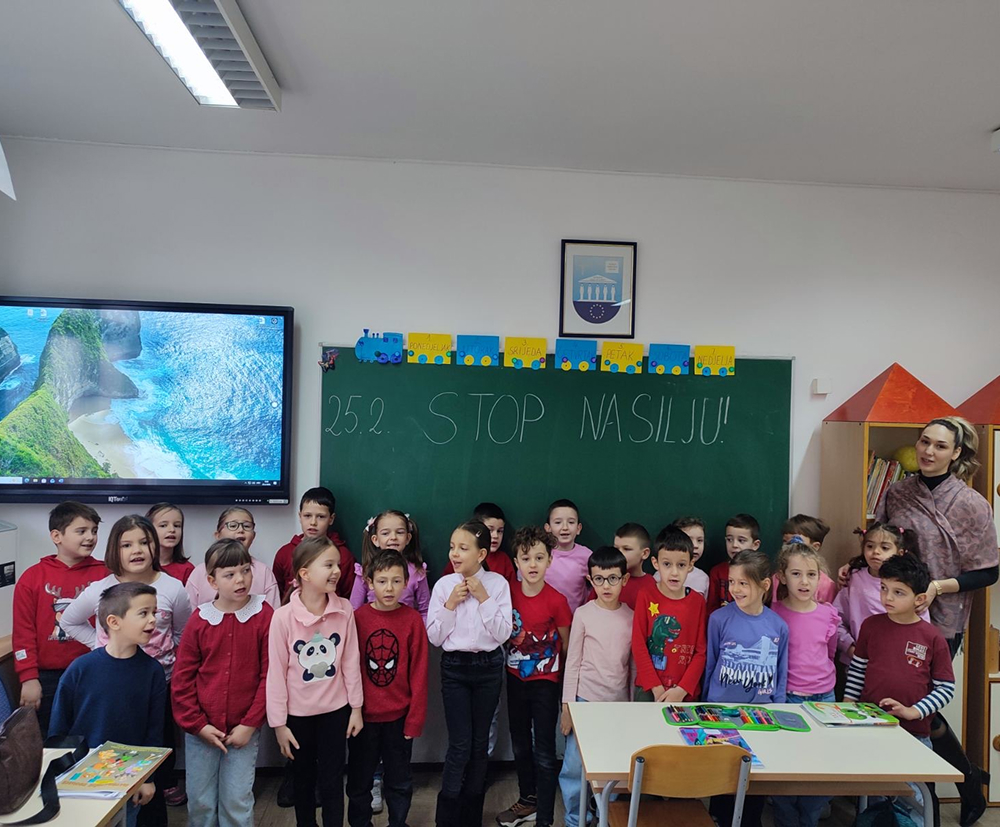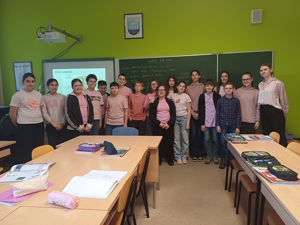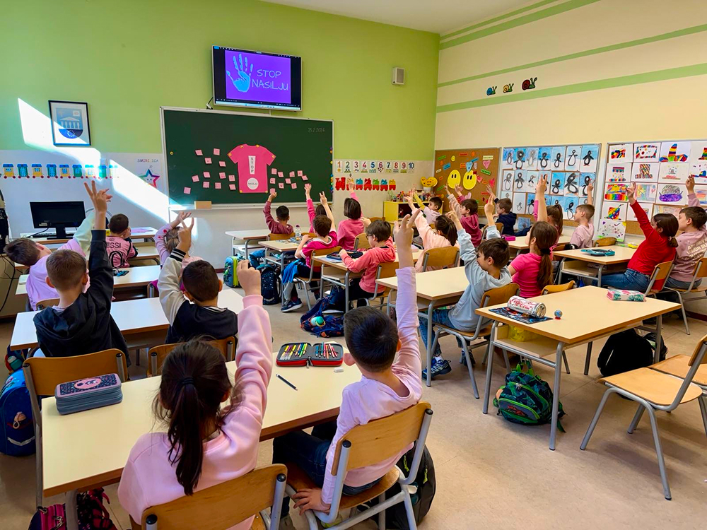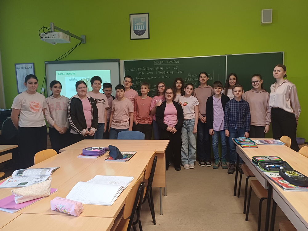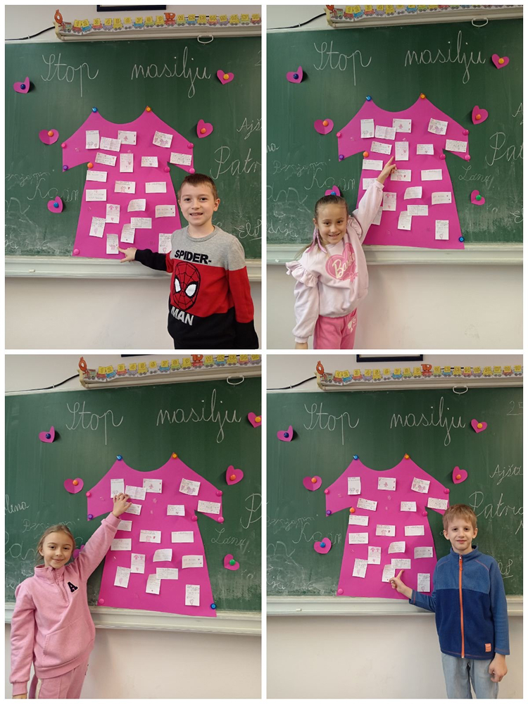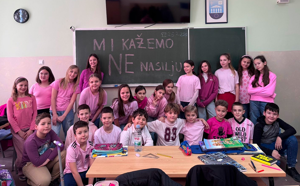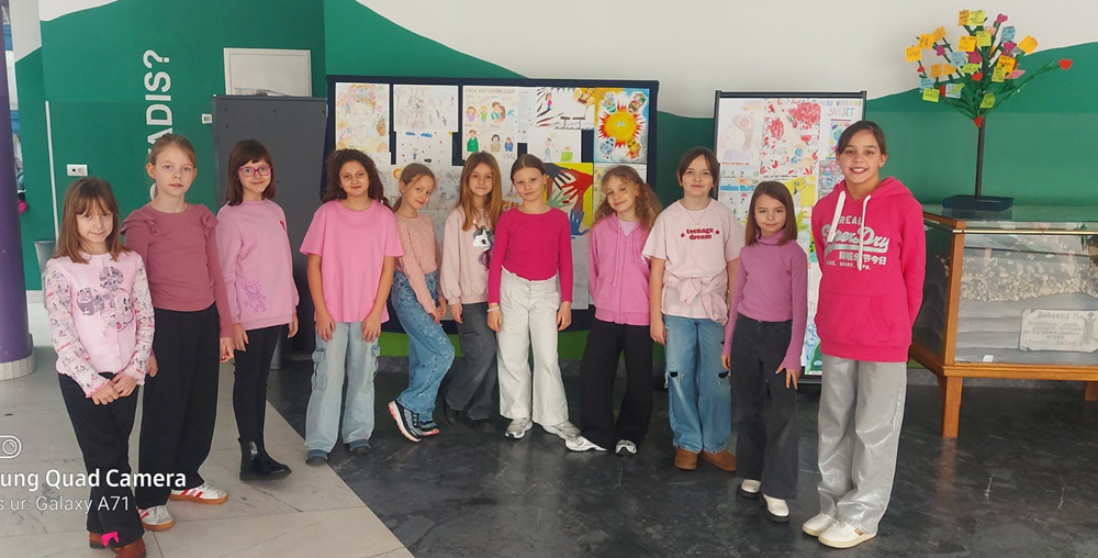 U kreativnoj radionici učenici su od ružičastog papira izrađivali male majice, pažljivo ih izrezivali i na njih ispisivali snažne poruke protiv nasilja:„Stop nasilju“ i „Biraj ljubaznost“. Svaka poruka nastala je iz dječijeg srca i iskrene želje da naš razred bude mjesto sigurnosti, osmijeha i podrške. Na Dan obilježavanja ružičastih majica u srijedu, 25. veljače 2026. godine učenici su obukli ružičaste majice kao simbol zajedništva i jasne poruke – nasilju nema mjesta među nama.