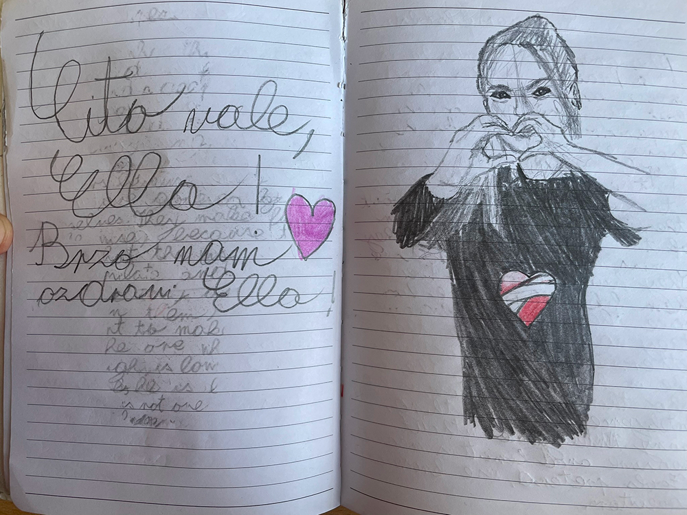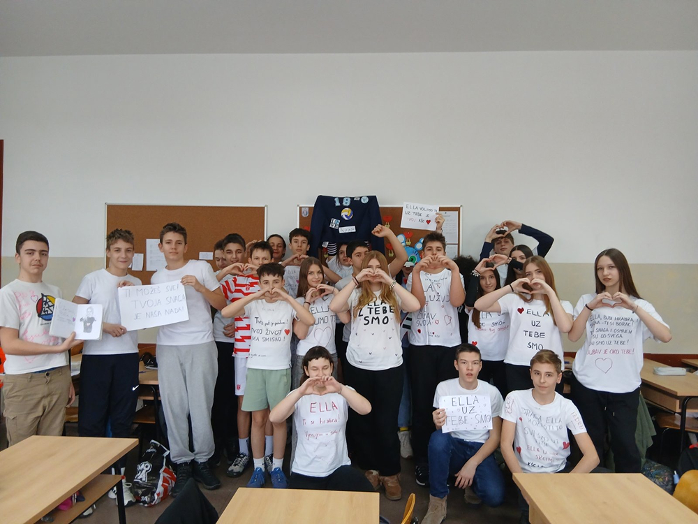 Učenici 8.b razreda prisjetili su se naše srednjoškolke Elle te joj uputili iskrene poruke ohrabrenja i pokazali da u svojoj školskoj zajednici ima veliku podršku. Posebnu gestu podrške pokazao je učenik Damir R., koji je crtežom Elle simbolično prenio njihove iskrene želje za što bržim oporavkom.