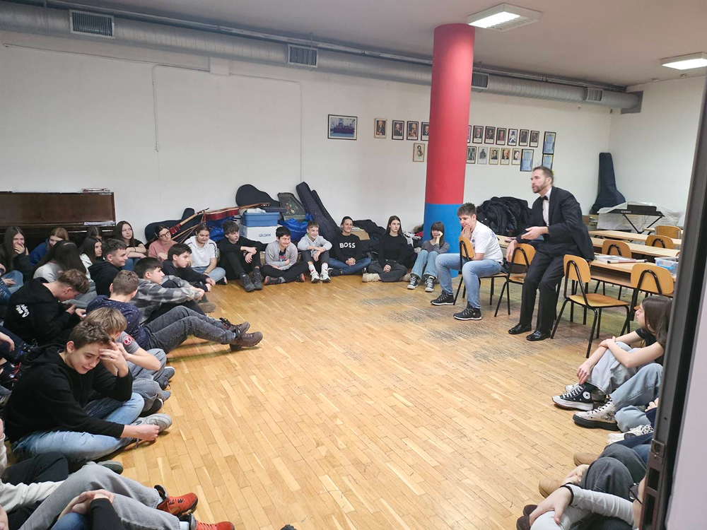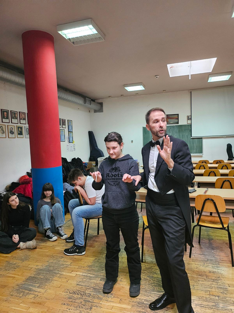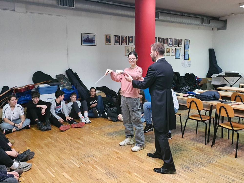 Dana 5. i 6. veljače 2026. godine, u okviru specifičnih oblika nastave iz predmeta Glazbeni odgoj, u našoj je školi održana radionica na temu dirigiranja. Radionice je organizirala profesorica Ana Andrle-Imamović, a vodio ih je maestro Dario Vučić, koji je učenicima na zanimljiv, pristupačan i pedagoški osmišljen način približio umijeće dirigiranja.