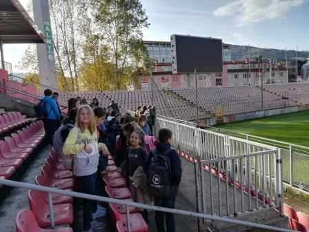Nakon priredbe zajedno smo se uputili u obilazak nogometnog stadiona Bilino Polje na kojem često igra reprezentacija Bosne i Hercegovine, ali i domaći nogometni klub Čelik, što su mnogi učenici već znali i bili oduševljeni prostorijama, peharima, konferencijskom dvoranom…