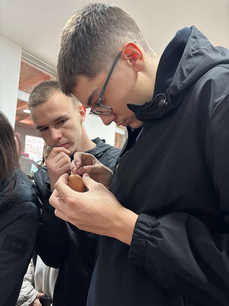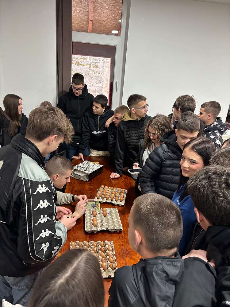 Budući da nas je sve vrijeme pratila kiša, radionica potkivanja jaja, koja je trebala biti održana na gradskom trgu, premještena je u prostorije Samostana. Učenici su bili oduševljeni Mateom Ivičevićem, najmlađim kovačem koji im je vrlo rado demonstrirao ovu tehniku, a budući da je spomenuo da se nekada zapravo spremnost na ženidbu testirala ovom vještinom, mnogi momci su se okušali i na oduševljenje djevojaka i uspjeli potkovati jaje.