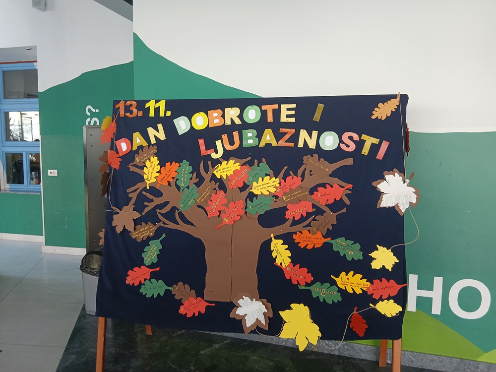 U našoj školi smo zajedno s učenicima, nastavnicima i osobito članovima Novinarske sekcije obilježili Međunarodni dan dobrote i ljubaznosti. Ovaj dan se obilježava u cijelom svijetu, a nastao je 1998. godine u Japanu. Učenici su putem školskog razglasa čuli poticajan motivacijski tekst i saznali više o ovom danu te prigodno uređenom panou u školskom holu od učenica Marine i Karmen.