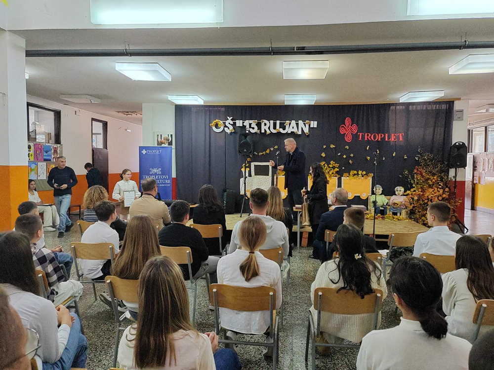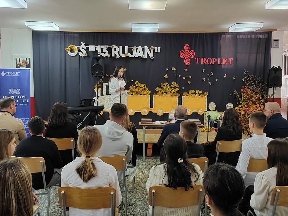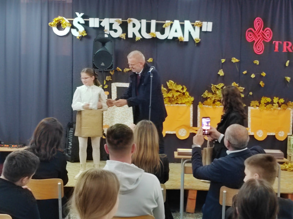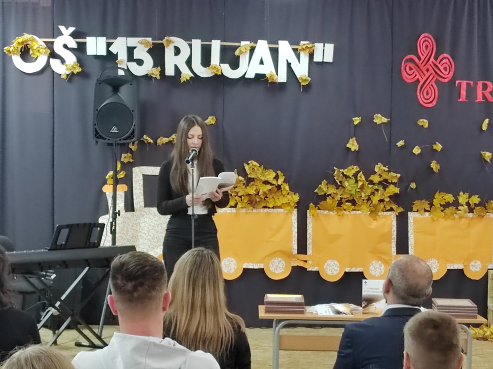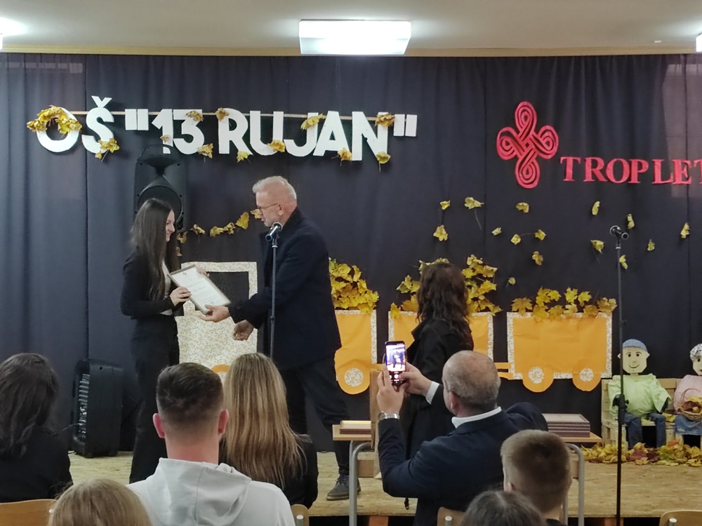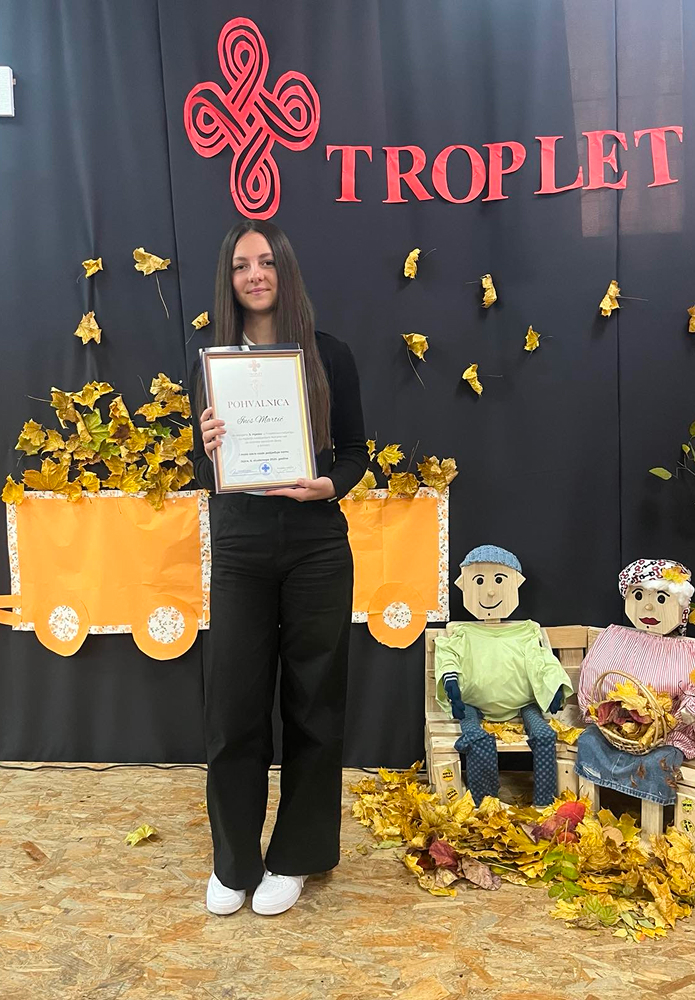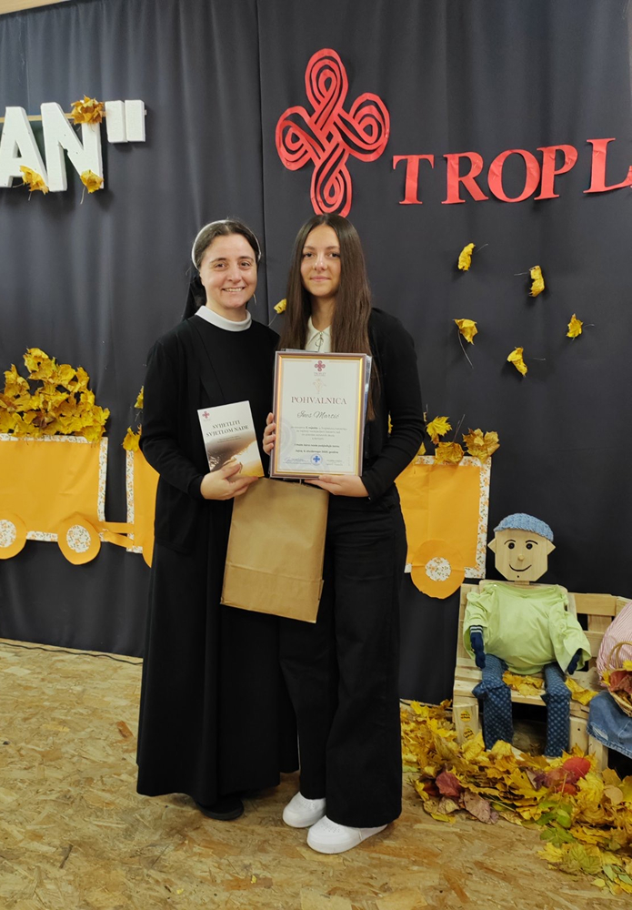 S ponosom objavljujemo izniman uspjeh naše osmašice Ines Martić koja je osvojila treću nagradu na prestižnom književno-kulturnom susretu u okviru manifestacije ,,Tropletovi dani kulture”, održanom 6. studenog u Jajcu. Naša je učenica nagrađena za svoj snažan literarni uradak pod nazivom ,,I mala iskra nade pobjeđuje tamu”, koji je prepoznao stručni žiri. Učenica je u Jajce putovala u pratnji svoje mentorice, profesorice hrvatskoga jezika, s. Ivane Jurišin. Tijekom prigodnog programa učenica je imala čast pročitati svoj nagrađeni rad pred nastavnicima, učenicima, stručnim žirijem i drugim gostima, što je bio posebno dirljiv trenutak, trenutak ponosa, divljenja i zahvalnosti. Za svoj izvanredan doprinos i talent učenica je nagrađena: pohvalnicom za postignuti uspjeh, zbornikom radova u kojem je objavljen i njezin nagrađeni tekst, novčanom nagradom kao priznanjem za literarno umijeće. Čestitamo našoj učenici na izvanrednom postignuću! Njezina priča o nadi koja pobjeđuje tamu nadahnuće je za sve nas u školi i potvrda da se trud, kreativnost i literarni talent uvijek isplate.