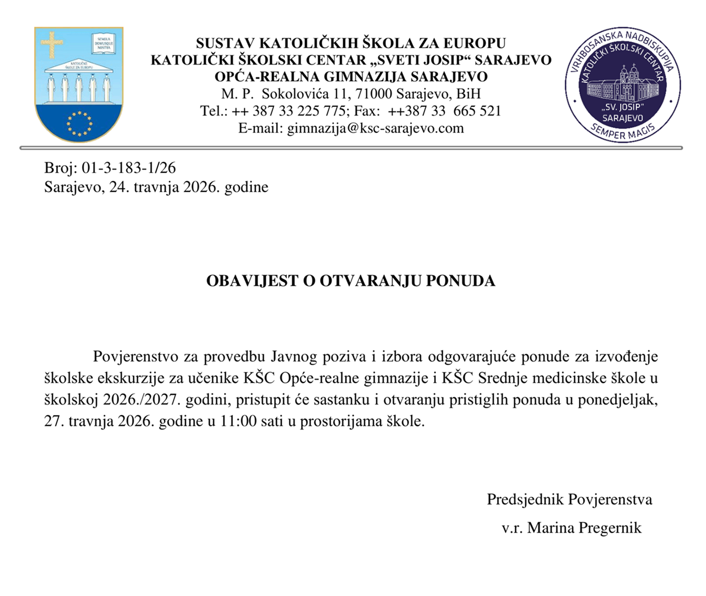 KATOLIČKI ŠKOLSKI CENTAR "SV. JOSIP" SARAJEVO