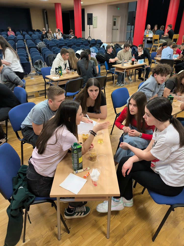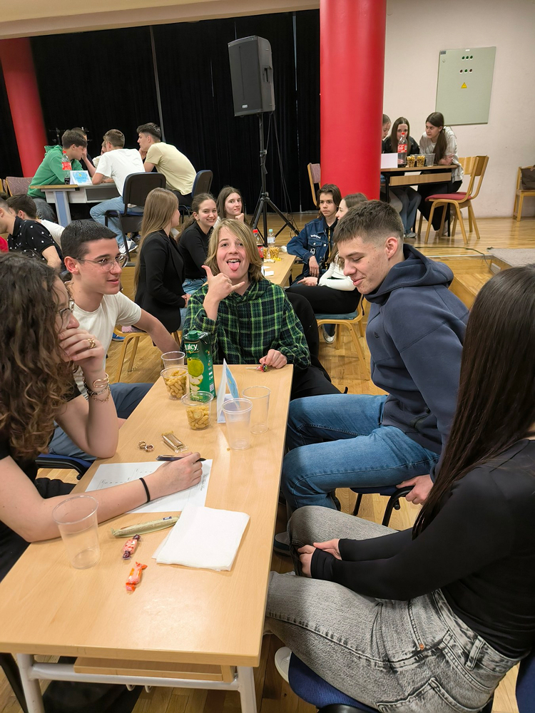 Učenici su pokazali odlično znanje iz deset različitih kategorija (povijest, geografija, jezici, religija, sport, znanost, kultura, brza kategorija, Film&TV i glazba), a uz to su se odlično i zabavili. Kviz je protekao u najbolje mogućem raspoloženju, pri čemu je posebno zanimljiva bila kategorija Glazba, gdje su učenici mogli pokazati i svoje pjevačko umijeće i time donijeti dodatne bodove svojoj ekipi, što su svi sa oduševljenjem i učinili.