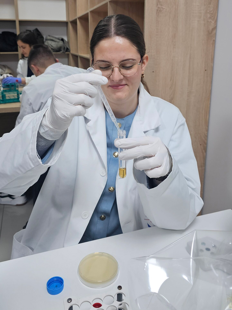 “Boravak na Burch univerzitetu bio je izuzetno edukativan i inspirativan, jer smo kroz stručno predavanje stekli dublje razumijevanje značaja oralnog zdravlja i njegove uloge u općem zdravlju čovjeka. Posebnu vrijednost imalo je praktično iskustvo u laboratoriji, gdje smo kroz antibiogram ispitivali antibiotska svojstva eteričnih ulja, povezujući teorijska znanja sa znanstvenim eksperimentom. Ovo iskustvo dodatno je obogatilo naše razumijevanje suvremenih pristupa u preventivnoj i eksperimentalnoj medicini” poručila je učenica Matea Radman.