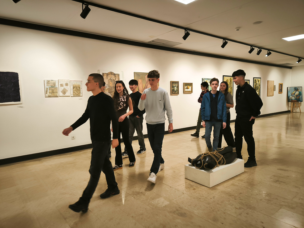 Dana 17. i 20. travnja 2026. godine učenici četiriju IX. i jednog VIII. razreda, u pratnji profesorica Ivane Mijić Čavlović, Andree Hadžidedić i Nataše Kelić, posjetili su izložbu u galeriji Collegium Artisticum na Skenderiji.