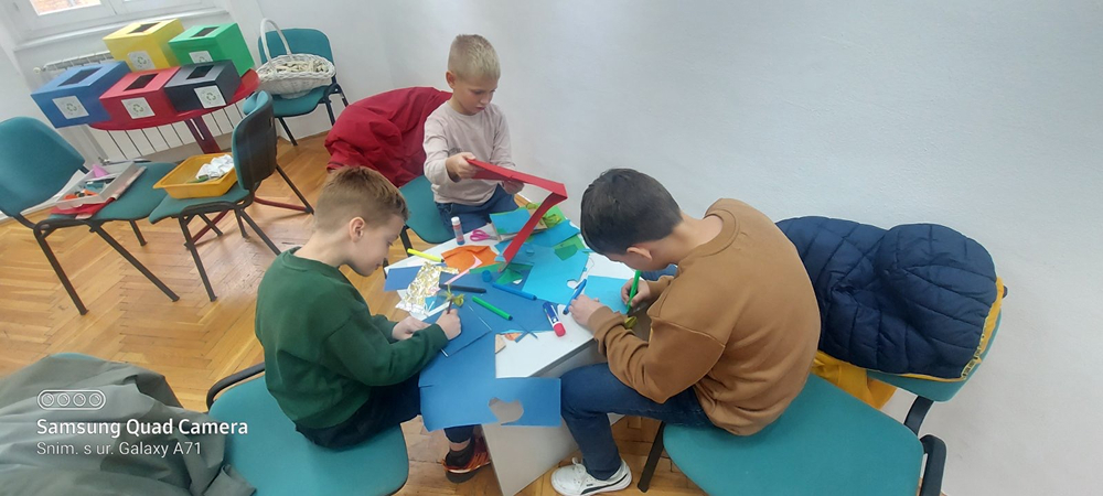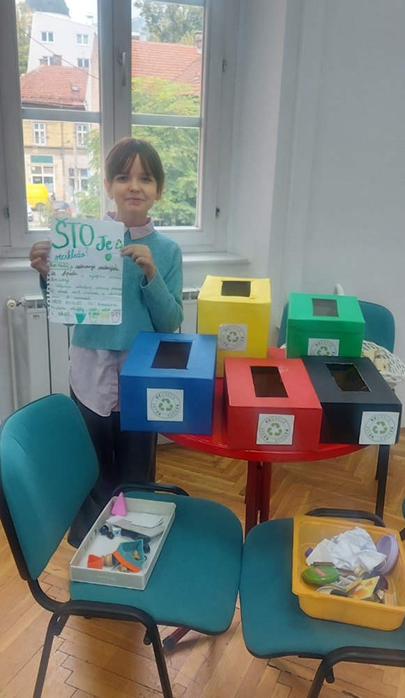 Radionica je održana u Centru kulture mladih Općine Centar Sarajevo, a vodile su je umjetnice Džejlana Karaman Pašić i Mejrem Karaman. Kroz igru, razgovor, likovno izražavanje i zajednički rad, učenici su učili što znači reciklirati, kako se otpad može ponovno iskoristiti te kako malim promjenama u svakodnevnom životu možemo čuvati svoj okoliš. Djeca su sa zanimanjem sudjelovala u praktičnim aktivnostima – stvarala su nova umjetnička djela od odbačenih materijala, otkrivajući da se i ono što izgleda bezvrijedno može pretvoriti u nešto lijepo i korisno.