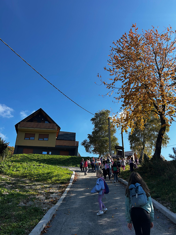 Po dolasku smo se smjestili u planinarski dom, gdje smo kratko odmorili i pripremili se za aktivnosti koje su nas čekale. Dan je bio ispunjen zabavom, igrom i sportskim izazovima. Okušali smo se u penjanju na umjetnu stijenu, ziplineu i aktivnostima u adrenalinskom parku. Svi su hrabro sudjelovali i međusobno se bodrili.