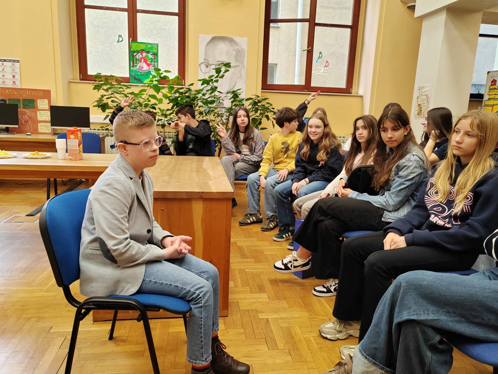 Svrha ovog susreta bila je promicanje inkluzije djece s Downovim sindromom i razvijanje empatije kroz izravan, živ kontakt. No, ono što smo dobili bilo je puno više od obične lekcije o prihvaćanju. Naš gost je s nevjerojatnom spontanošću odgovarao na pitanja nas mladih novinara, pričajući o stvarima koje voli, svojim hobijima i svakodnevici. Njegova nas je duhovitost i spontanost nasmijala do suza, a iskrenost podsjetila na ono što je u životu uistinu važno. U svakoj njegovoj rečenici osjetila se čista ljubav i radost življenja kojima je jednostavno zadobio naše simpatije.