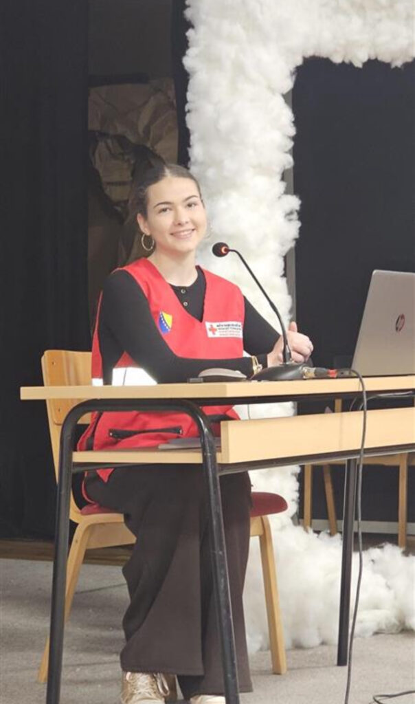 Kao volonterka Crvenog križa Općine Centar Sarajevo, učenica je također predstavila ulogu i značaj ove humanitarne organizacije, upoznavajući prisutne s njenim osnovnim principima, humanitarnim djelovanjem i mogućnostima uključivanja mladih u volonterski rad.