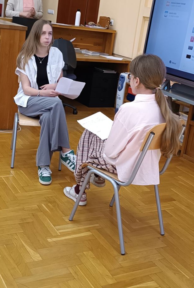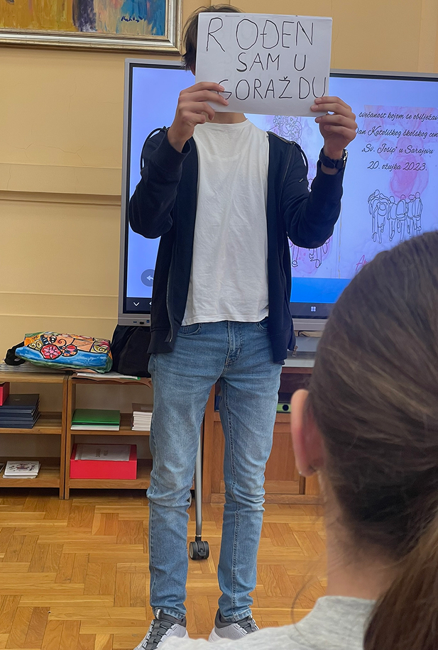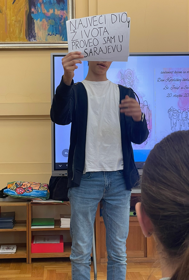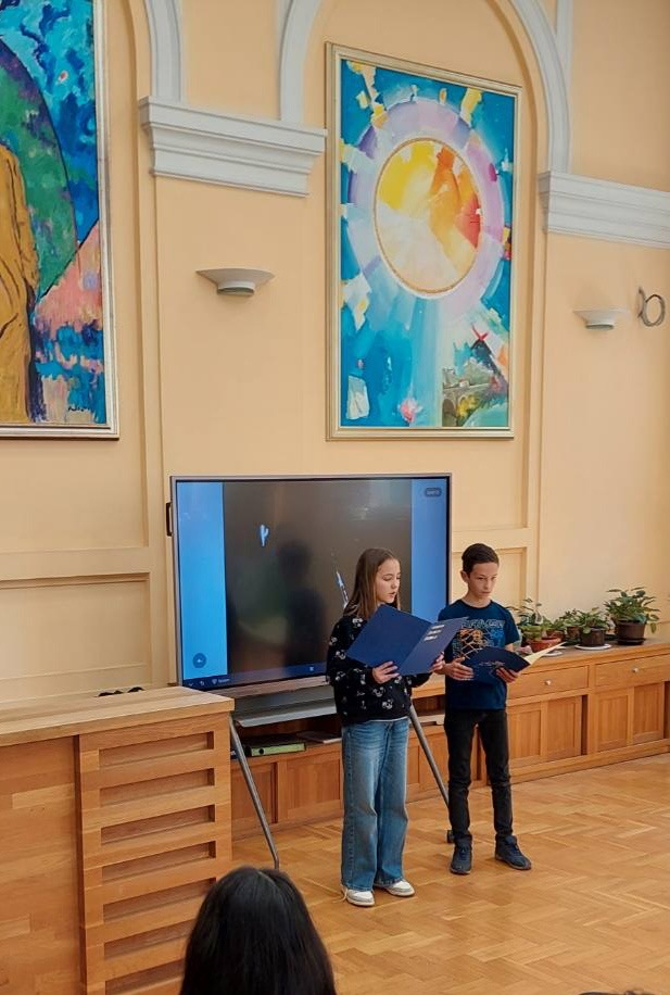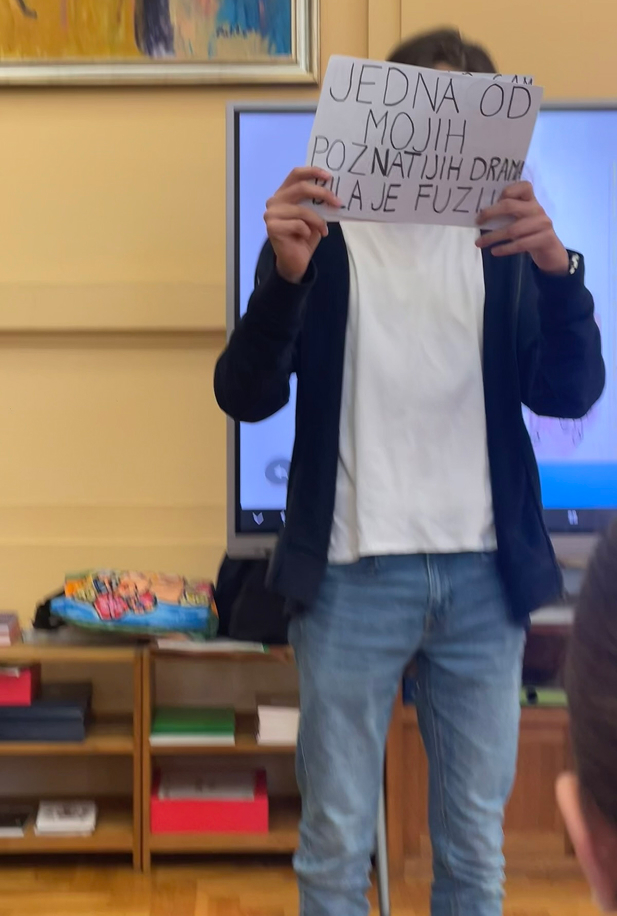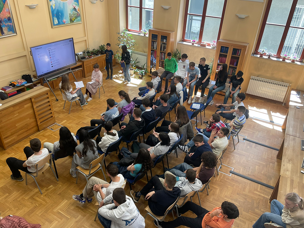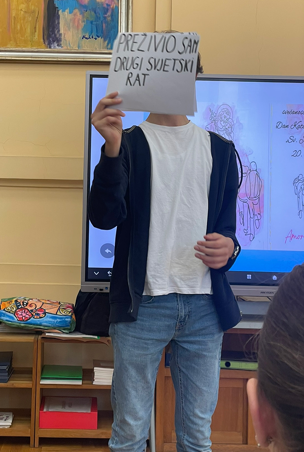 Naravno da je idealno mjesto zbivanja bila školska knjižnica, pa je cijeli program počeo isječkom iz intervjua Ive Andrića čije ime i nosi naša knjižnica.
