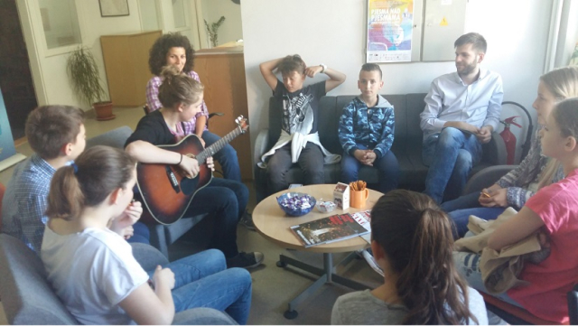 Saznali smo da Radio Marija u Bosni i Hercegovini postoji već šest godina, te da tu radiopostaju diljem svijeta sluša više od 500.000 ljudi. Nakon toga, uputili smo se u redakciju Svjetla riječi. Simpatična novinarka Rafaela Obučić nam je pokazala što oni sve tamo rade: izdaju časopis, knjige, snimaju radioemisije… Na kraju obilaska naši su mali novinari imali priliku novinara Danijela Stanića pitati sve što ih zanima: koliko dugo radi svoj posao, zašto voli biti novinar… Uz lijep i gostoljubiv doček, u redakciji Svjetla riječi darovali su nam i novi broj njihovog mjesečnika, a također i jednu knjigu. Uz ugodno druženje, opustili smo se i uz pjesmu i zvuke gitare koju su nam svirale učenice sedmog razreda. A kako šećer uvijek, ali baš uvijek dolazi na kraju, tako je bilo i ovoga puta. Kao nagradu za cijelu školsku godinu uspješnoga rada, nastavnica Nataša Mandić odvela nas je na kolače, koje smo, iako u žurbi, pojeli u slast. Vratili smo se na nastavu točno na vrijeme i cijeloga dana zbrajali dojmove tog zanimljivog dana.