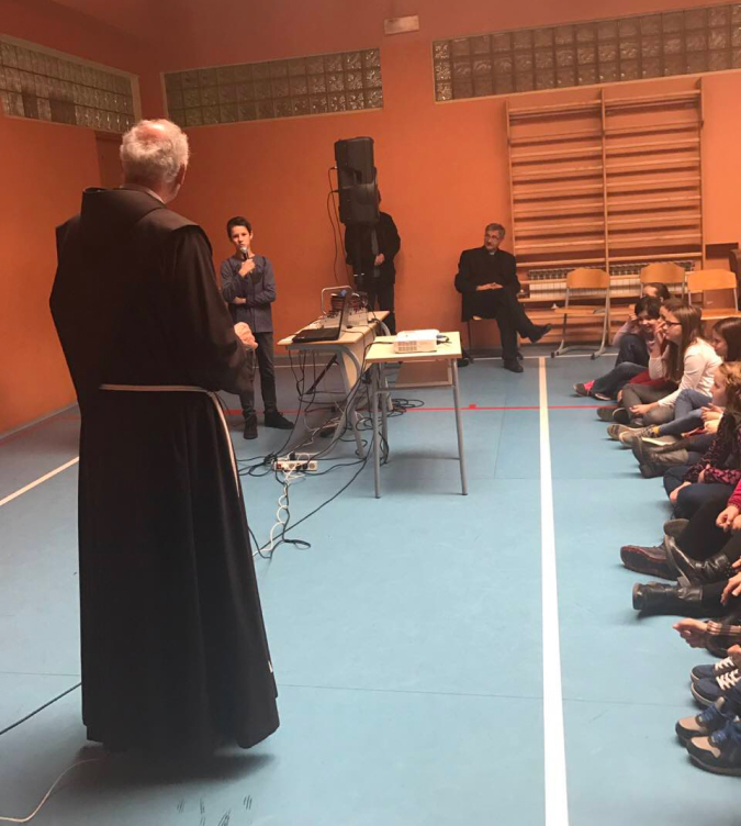 Mons. Luka je sve učenike pozdravio, upoznao s radom i poslanjem ureda Papinskih misijskih djela u Bosni i Hercegovini i potaknuo na ljubav prema misijama. Poseban dojam ostavio je na približno 1500 učenika i djelatnika fra Filip, koji nam je govorio o svom djelovanju i misijskom poslanju u DR Kongo. Iako je svaki svećenički poziv zapravo poziv za naviještanje Evanđelja, neki svećenici to žive u svome narodu, dok drugi pak Isusove riječi prenose svojim životom na drugim kontinentima, u drugačijim kulturama i na različitim jezicima.