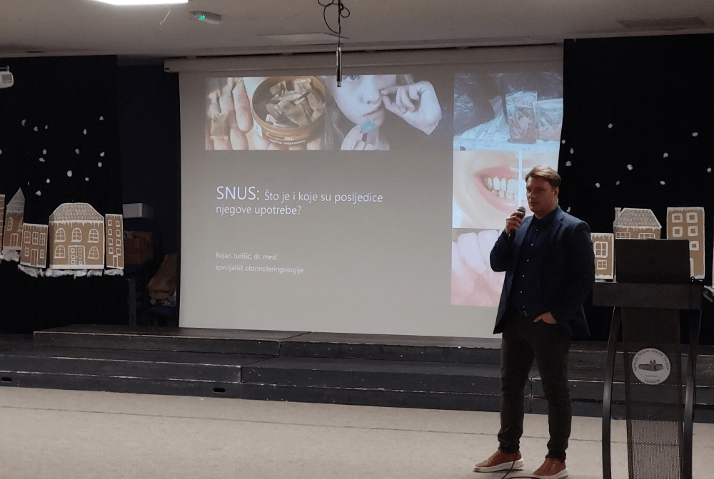 Dr. Jurišić je kroz stručan i jednostavan način objasnio što je snus, kako utječe na organizam te koje su dugoročne posljedice njegova korištenja. Posebno je naglasio važnost prevencije i informiranja mladih o štetnim navikama.