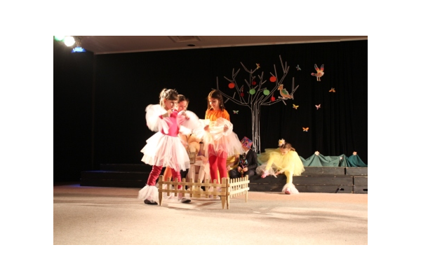 Predstavu je izvela Dramska grupa, čiji scenarij i režiju potpisuju Ana Dolić i Ivana Mostarac. U predstavi su sudjelovali učenici od 2. do 9. razreda, kao i sekcija Mali scenografi pod vodstvom Terezije Badrov i Tamare Mišanović, koji su zaslužni za kostime i izgled scene. Priča govori o vrapcu koji je bio pohlepan i nezadovoljan, no nakon što je upao u nevolju, shvatio je da su prijatelji njegovo najveće bogatstvo. Realizaciju predstave pomogli su roditelji članova Dramske grupe, kao i nastavnici i prijatelji.
