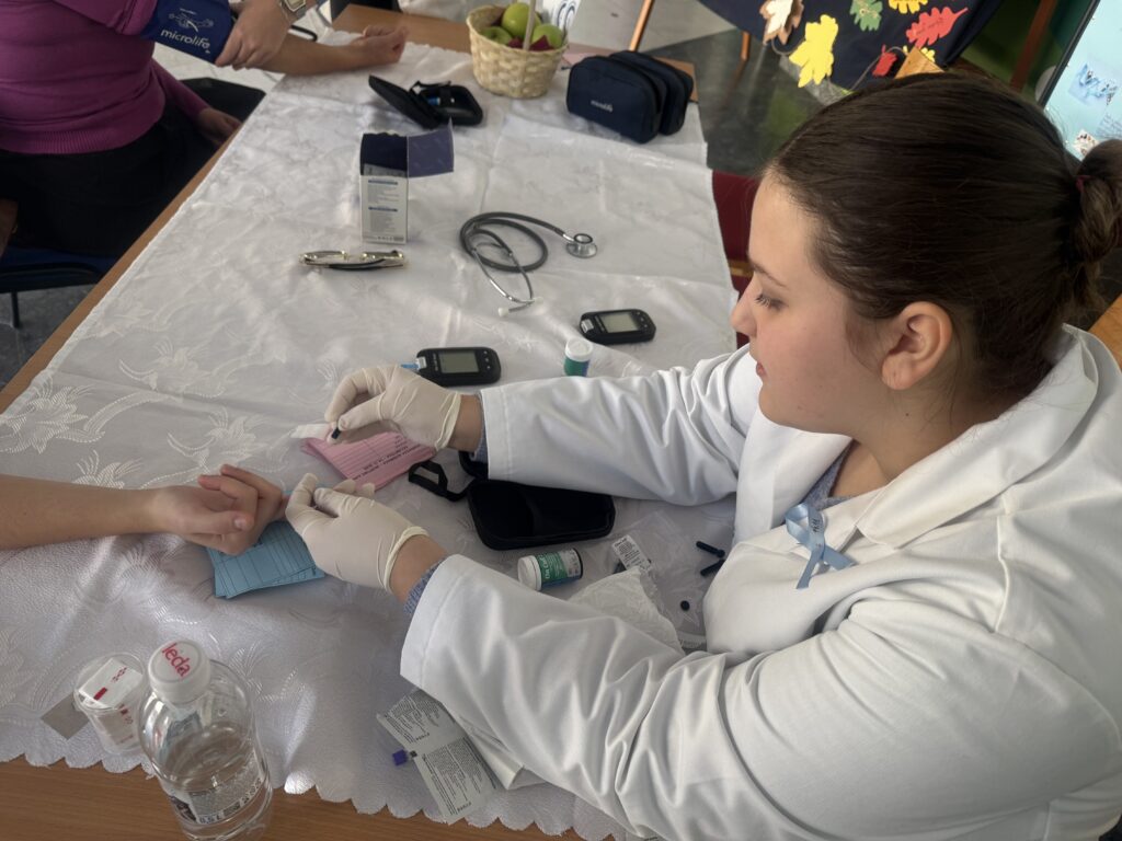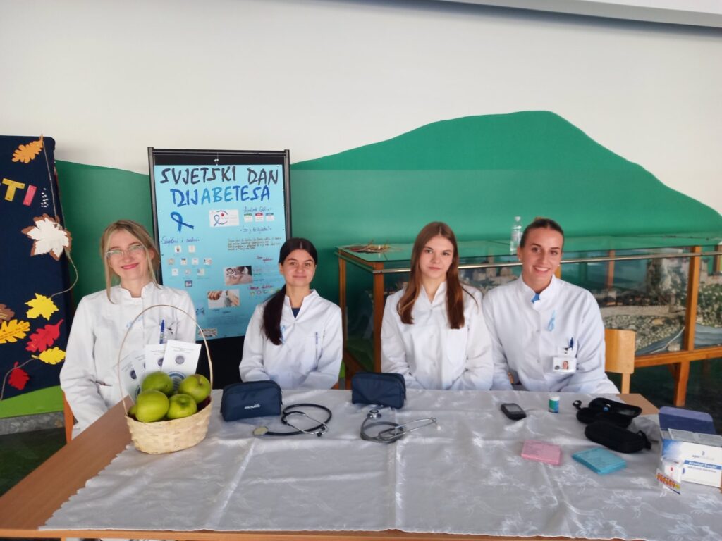 U školskom holu učenici sekcije organizirali su mjerenje razine glukoze u krvi, krvnog tlaka, saturacije i pulsa. Velik broj učenika i djelatnika škole iskoristio je priliku za kontrolu vlastitog zdravstvenog stanja. Pripremljen je i informativni pano na kojem su prikazani najčešći simptomi dijabetesa, rizični čimbenici te preporuke za zdrav način života. Učenici su izradili i promotivne letke te plave mašnice, koje simboliziraju globalnu borbu protiv dijabetesa.